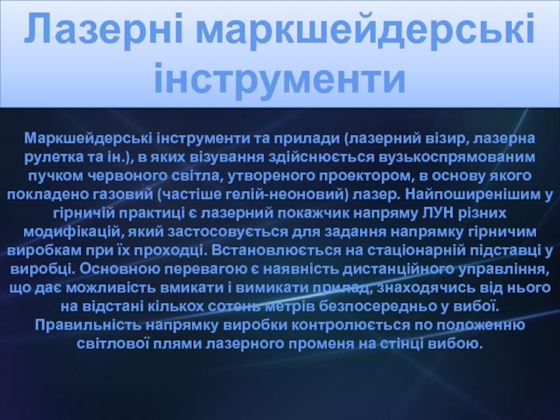 Маркшейдерські інструменти та прилади (лазерний візир, лазерна рулетка