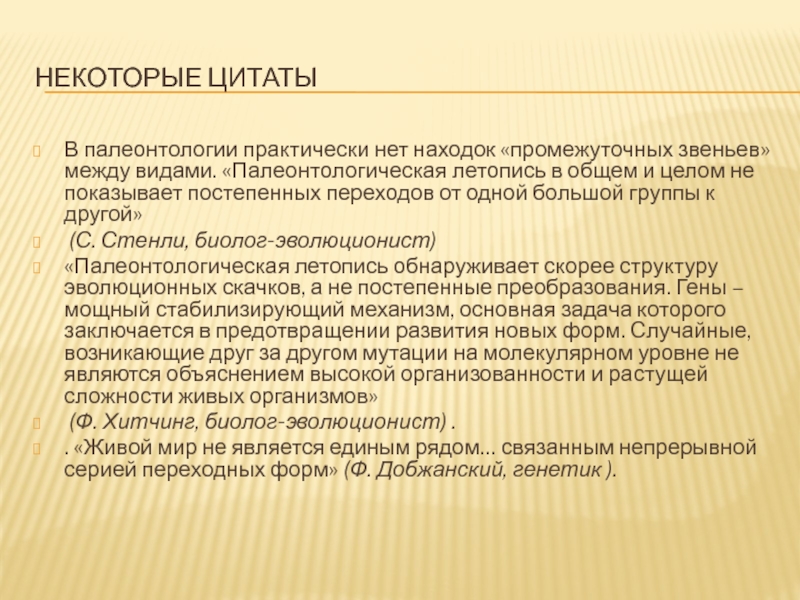 . «Живой мир не является единым рядом… связанным непрерывной серией переходных форм» (Ф. Добжанский, генетик ).