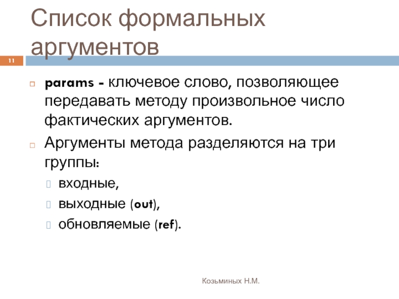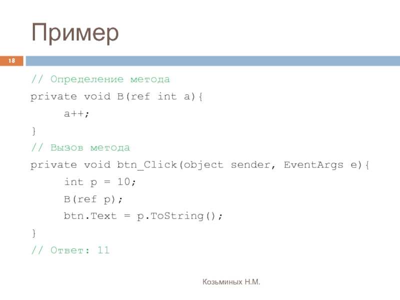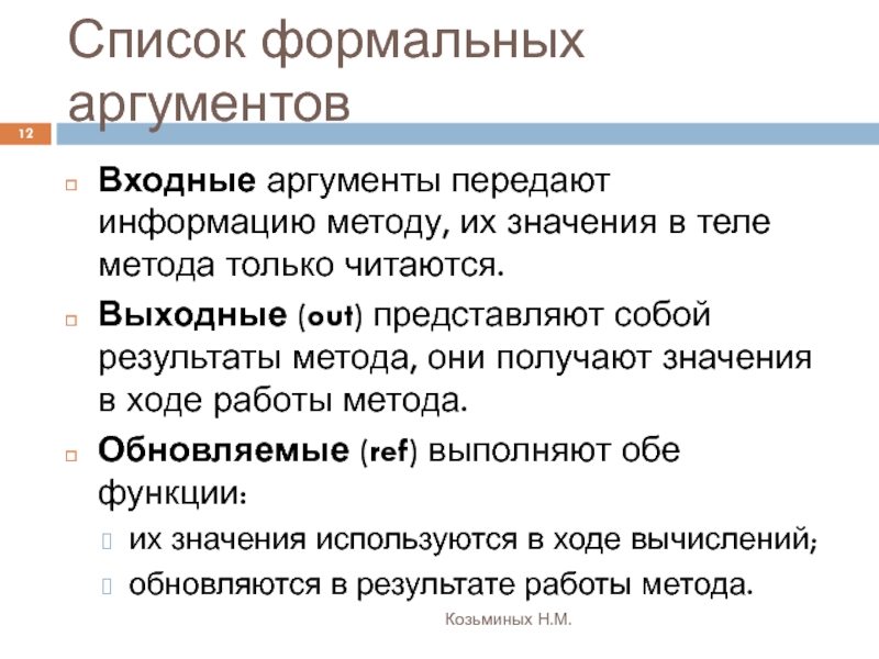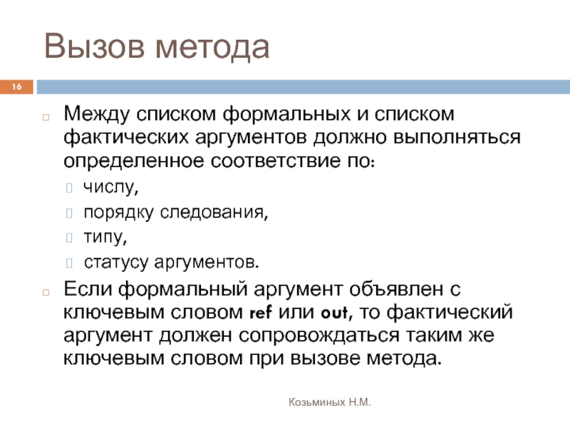 аргумент объявлен с ключевым словом ref или out, то фактический аргумент должен сопровождаться таким же ключевым словом при вызове метода.