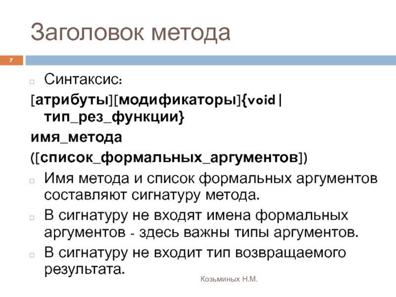 [атрибуты][модификаторы]{void| тип_рез_функции}