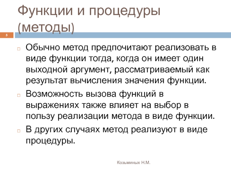 Возможность вызова функций в выражениях также влияет на выбор в пользу реализации метода в виде функции.