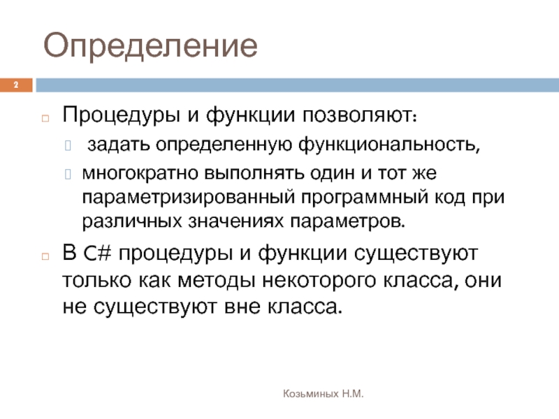 C# процедуры и функции существуют только как методы некоторого класса, они не существуют вне класса.