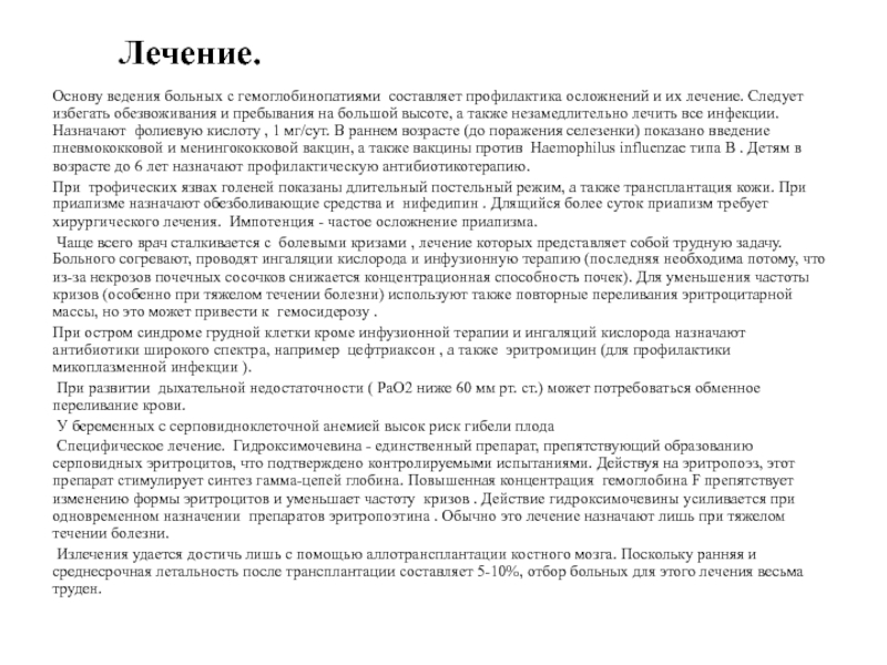 Основу ведения больных с гемоглобинопатиями составляет профилактика осложнений и их