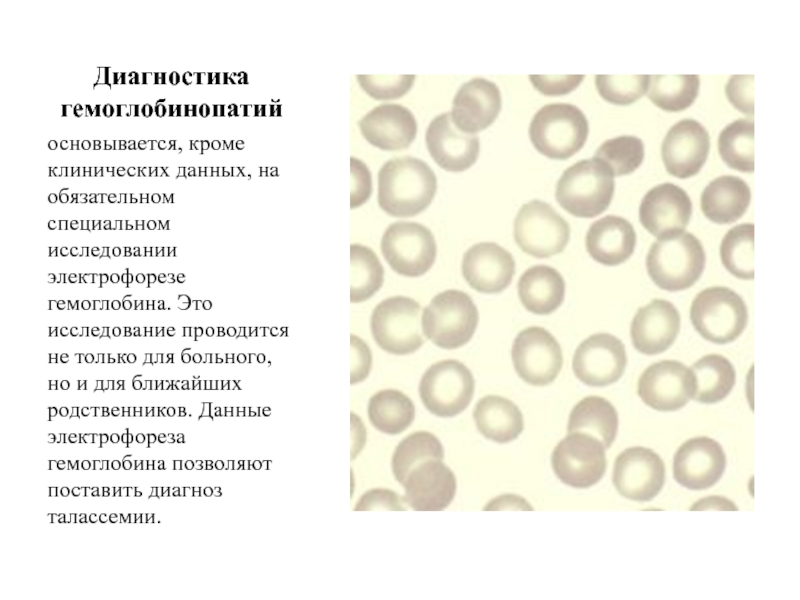 и для ближайших родственников. Данные электрофореза гемоглобина позволяют поставить диагноз талассемии.