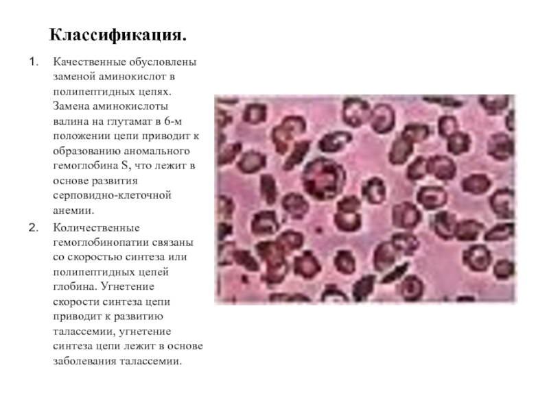 Гемоглобинопатии классифицируются на качественные и количественные.