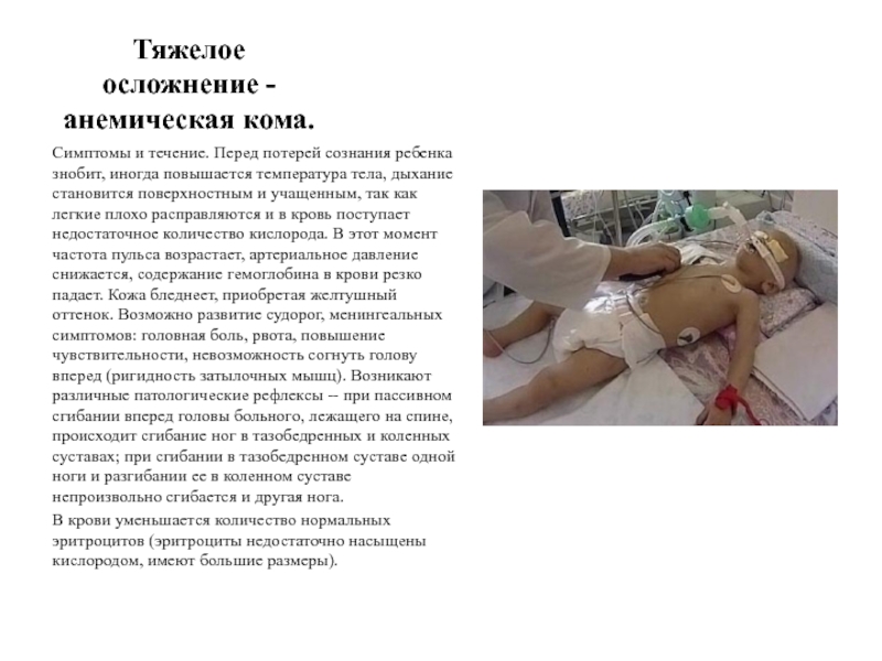 Слайд 26Тяжелое осложнение - анемическая кома.