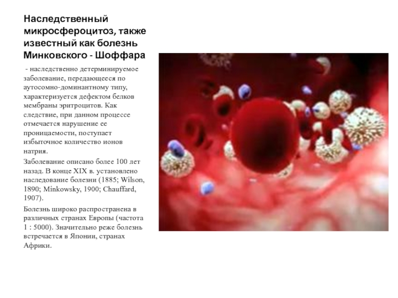 Слайд 21Наследственный микросфероцитоз, также известный как болезнь Минковского - Шоффара