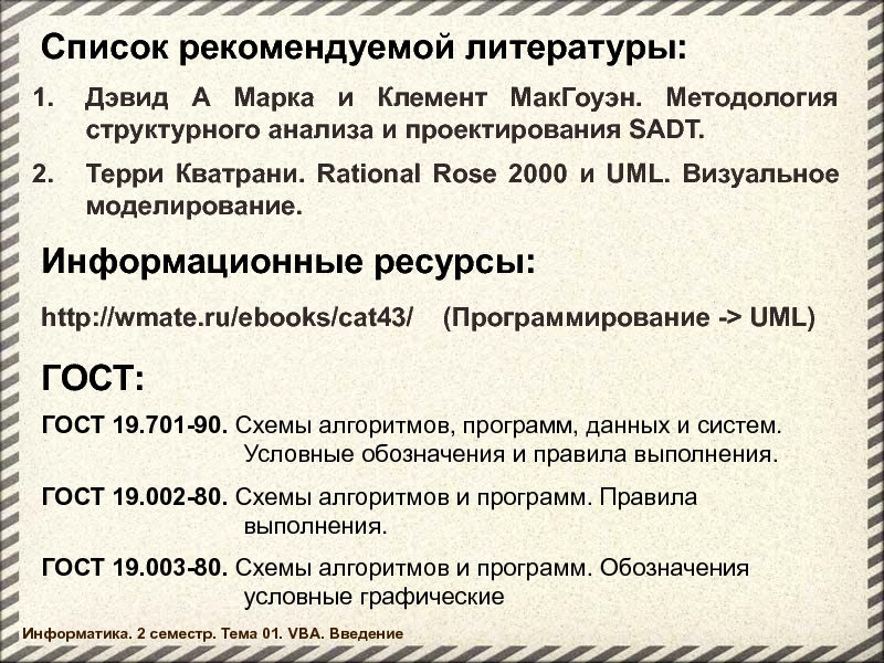 Информатика. 2 семестр. Тема 01. VBA. Введение