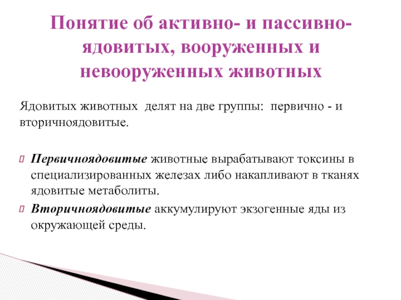 Понятие об активно- и пассивно-ядовитых, вооруженных и невооруженных животных