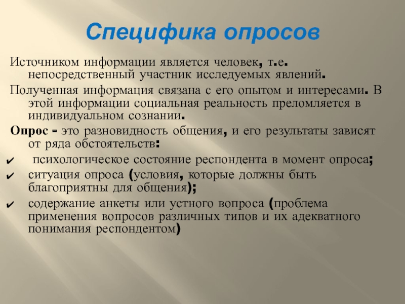 Слайд 6Специфика опросов