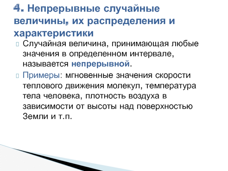 4. Непрерывные случайные величины, их распределения и характеристики