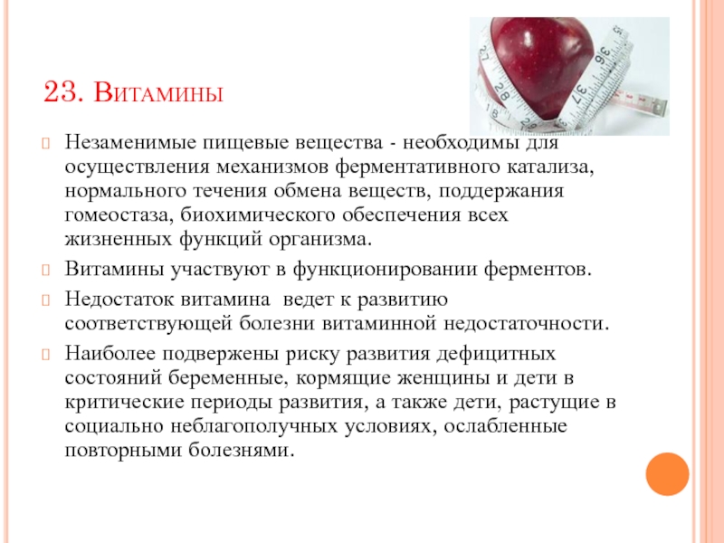 Незаменимые пищевые вещества - необходимы для осуществления механизмов ферментативного