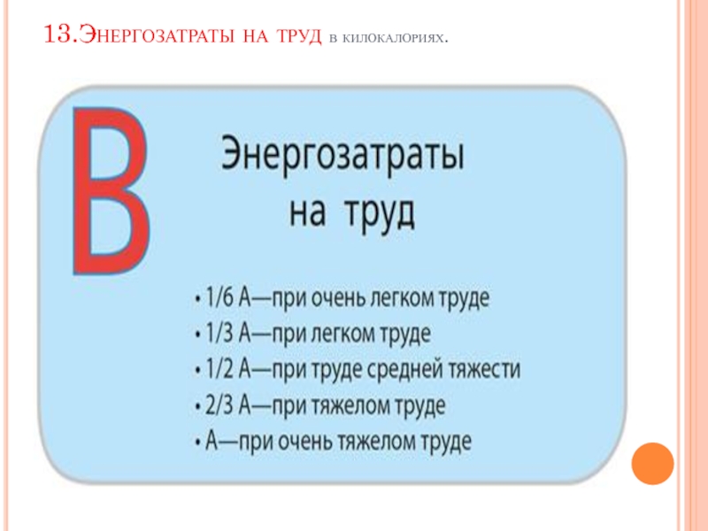 Слайд 1313.Энергозатраты на труд в килокалориях.