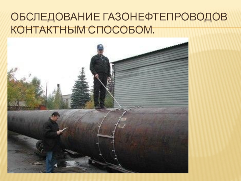 Слайд 10ОБСЛЕДОВАНИЕ ГАЗОНЕФТЕПРОВОДОВ КОНТАКТНЫМ СПОСОБОМ.