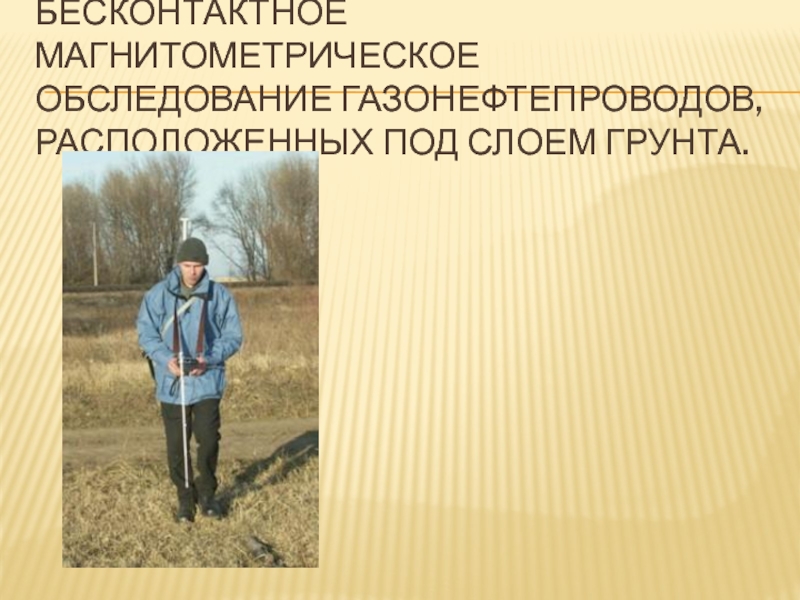 Слайд 9БЕСКОНТАКТНОЕ МАГНИТОМЕТРИЧЕСКОЕ ОБСЛЕДОВАНИЕ ГАЗОНЕФТЕПРОВОДОВ, РАСПОЛОЖЕННЫХ ПОД СЛОЕМ ГРУНТА.