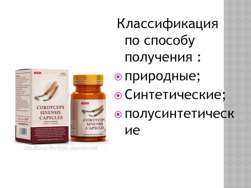 Классификация по способу получения : природные;Синтетические;полусинтетические