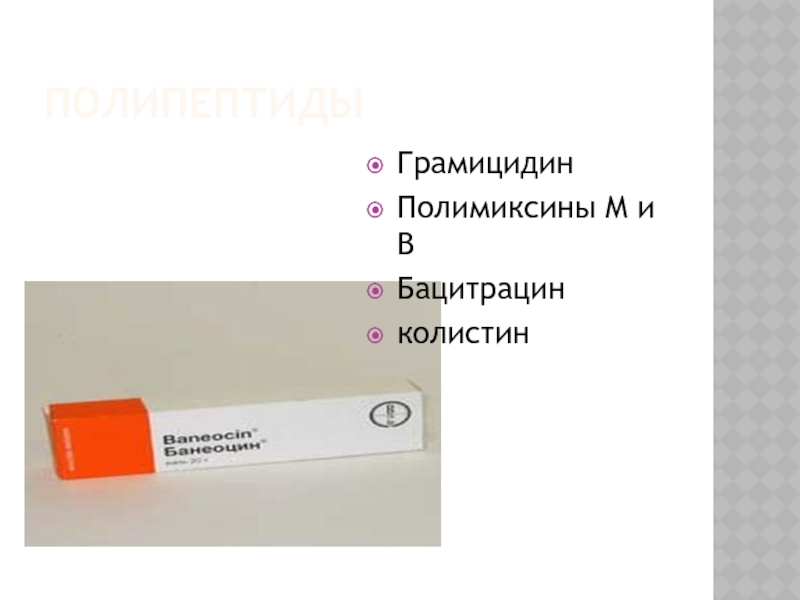 ПОЛИПЕПТИДЫГрамицидин Полимиксины М и ВБацитрацинколистин
