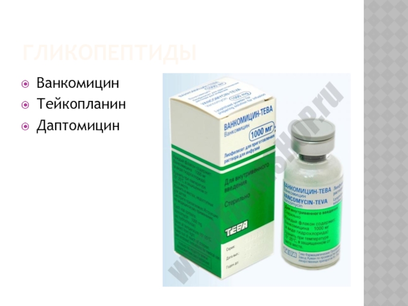 ГЛИКОПЕПТИДЫ ВанкомицинТейкопланинДаптомицин