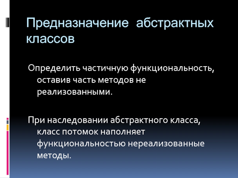 Слайд 36Предназначение абстрактных классов