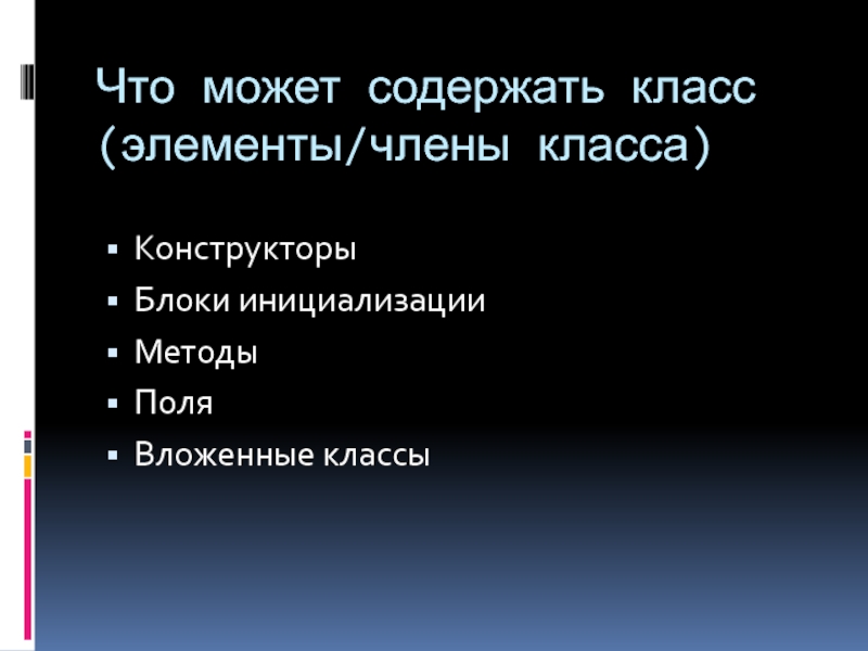 Слайд 8Что может содержать класс (элементы/члены класса)