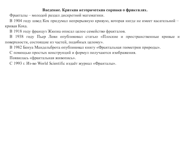 фракталов.Описание фрактальных процессов.
