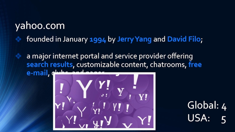 the world's information, including webpages, images, and videos;offers unique features and search technology.