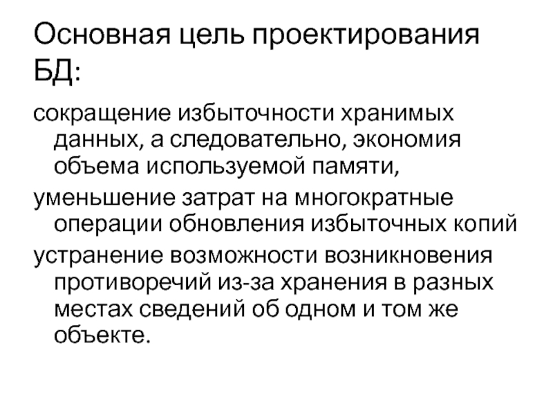 копий устранение возможности возникновения противоречий из-за хранения в разных местах сведений об одном и том же объекте.