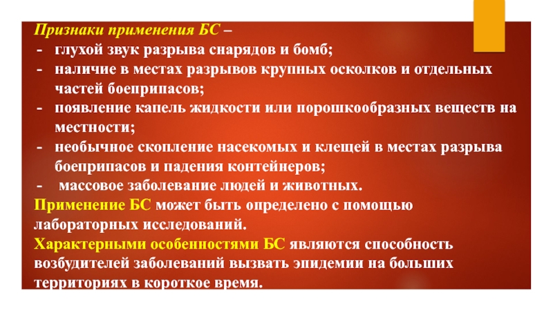 Слайд 11.6 Бактериологическое (биологическое оружие). Способы и признаки его применения.