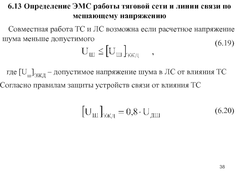 Слайд 386.13 Определение ЭМС работы тяговой сети и линии связи по