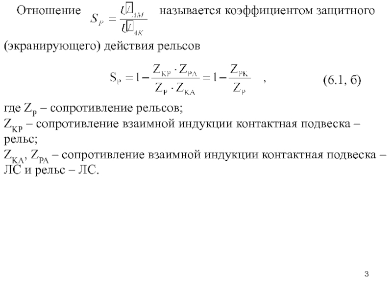 Vp – коэффициент характеризующий зависимость экранирующего действия рельсов от числа путей (для однопутного участка – 1, для двухпутного – 1.1, для многопутного 1,4)