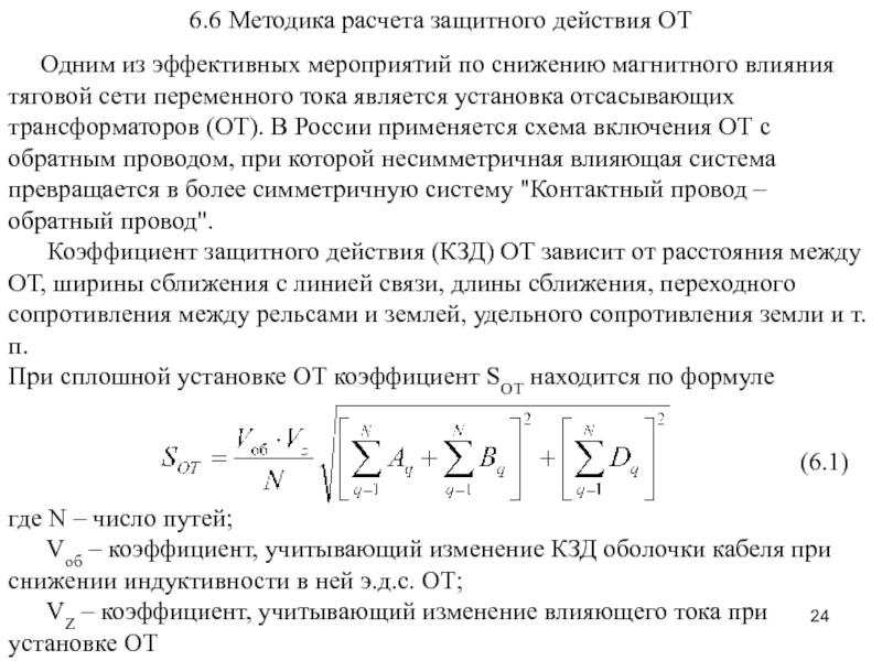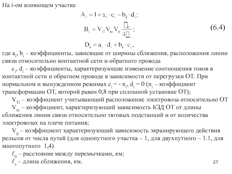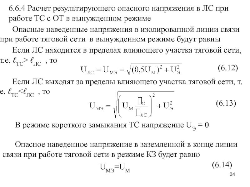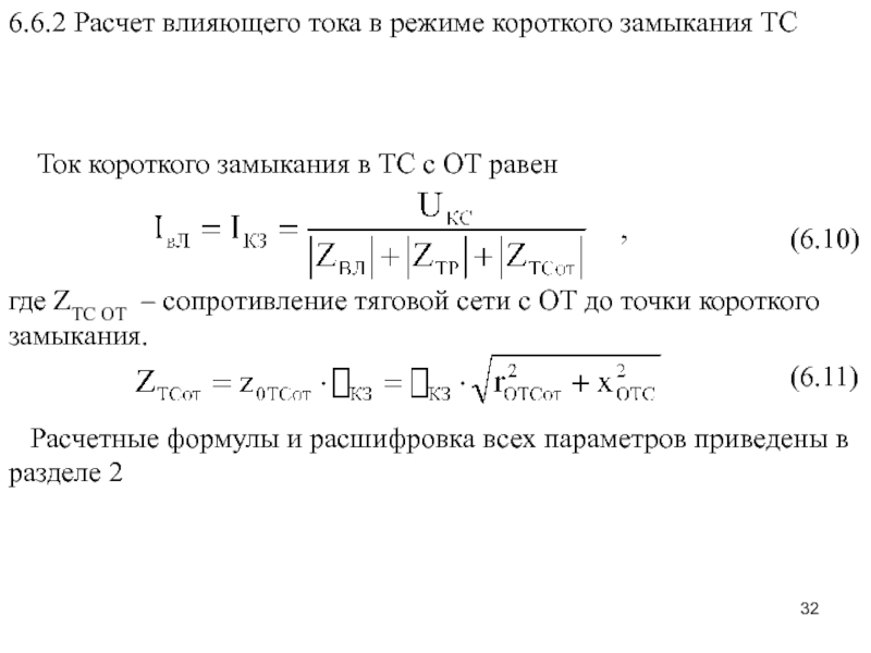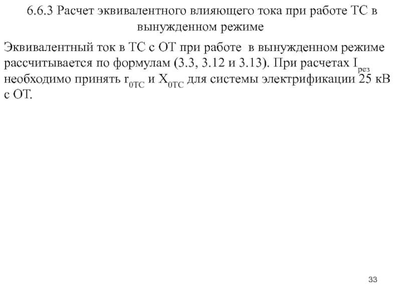 Слайд 33 6.6.3 Расчет эквивалентного влияющего тока при работе ТС в
