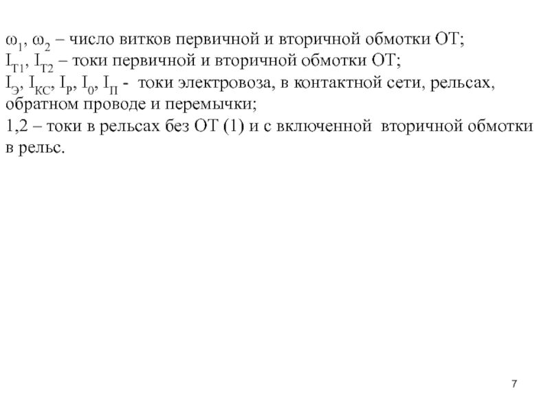 Слайд 7ω1, ω2 – число витков первичной и вторичной обмотки ОТ;