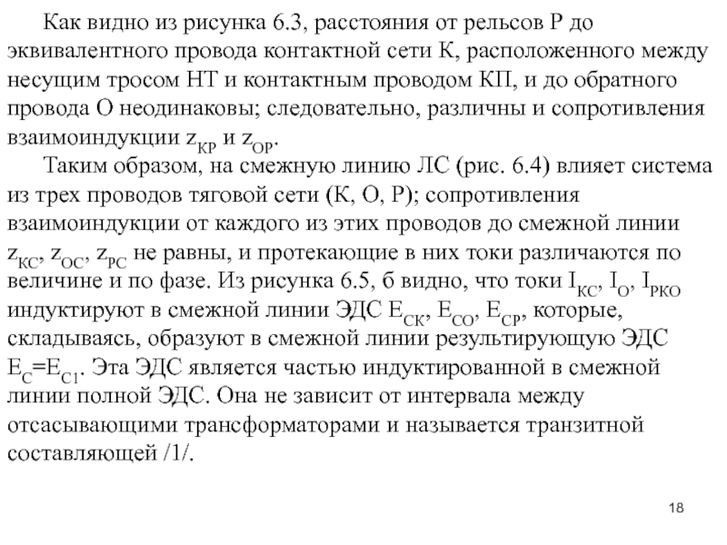 и контактным проводом КП, и до обратного провода О неодинаковы; следовательно, различны и сопротивления взаимоиндукции zКР и zОР.