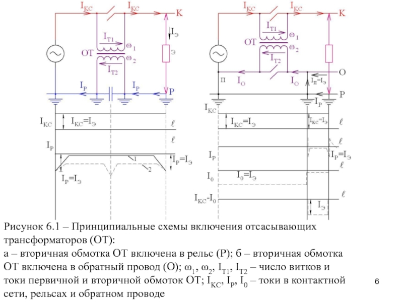 Слайд 6Рисунок 6.1 – Принципиальные схемы включения отсасывающих трансформаторов (ОТ):