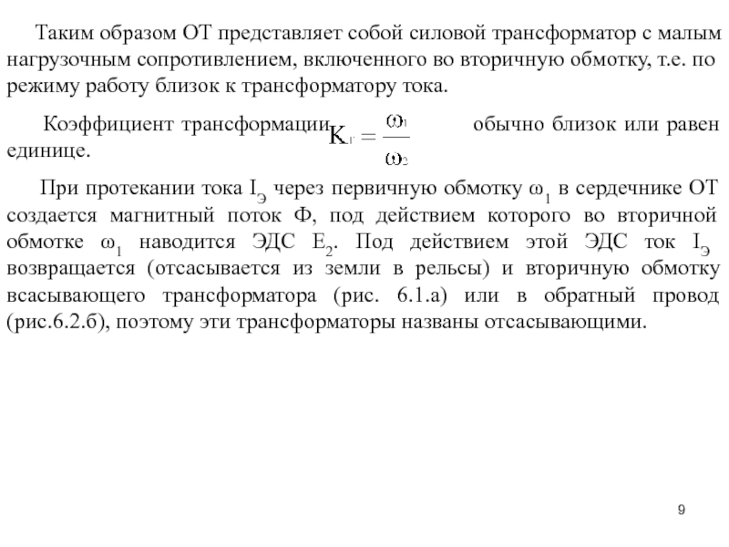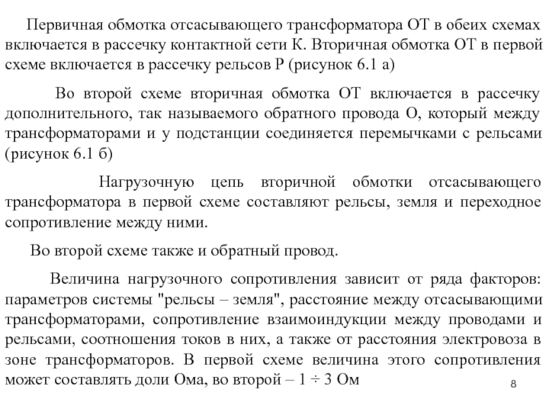 Слайд 8 Первичная обмотка отсасывающего трансформатора ОТ в обеих