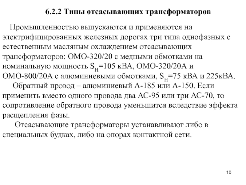 Слайд 10 6.2.2 Типы отсасывающих трансформаторов