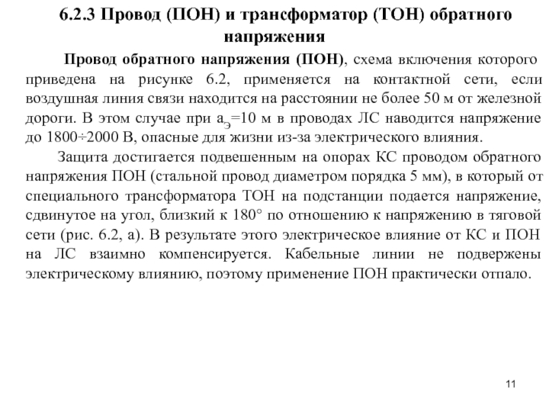 Слайд 11 6.2.3 Провод (ПОН) и трансформатор (ТОН) обратного