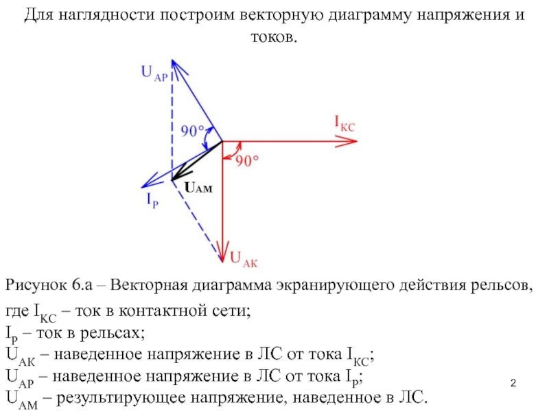 – Векторная диаграмма экранирующего действия рельсов,