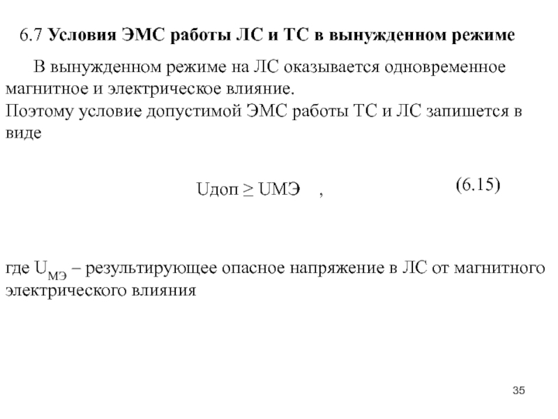 Слайд 35 6.7 Условия ЭМС работы ЛС и ТС в