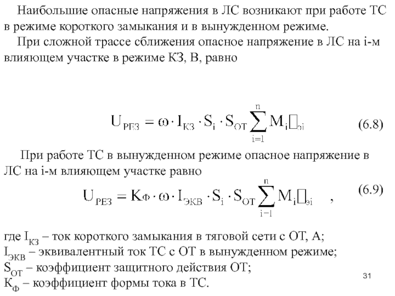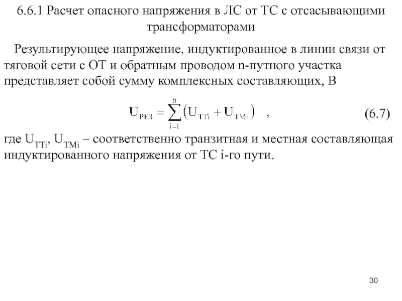 Слайд 306.6.1 Расчет опасного напряжения в ЛС от ТС с отсасывающими