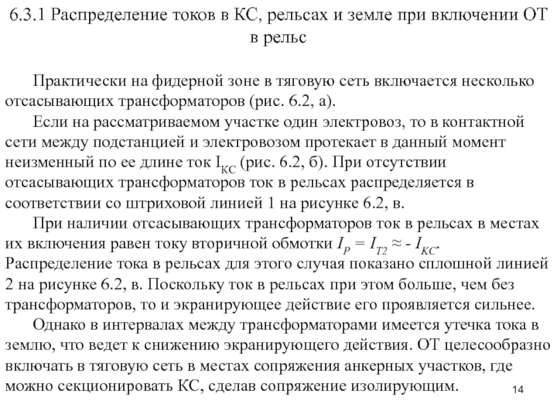 Слайд 166.3.2 Распределение токов в КС, рельсах, земле и обратном проводе
