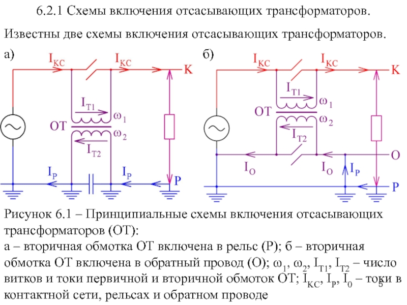 Слайд 56.2.1 Схемы включения отсасывающих трансформаторов.