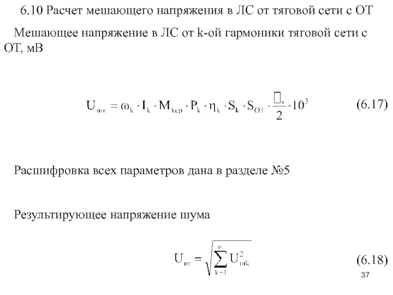 Слайд 376.10 Расчет мешающего напряжения в ЛС от тяговой сети с