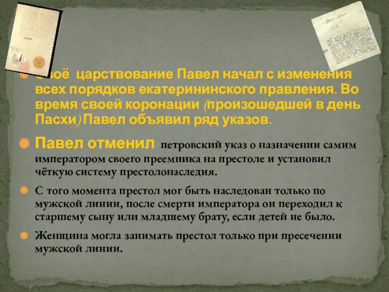 Слайд 7Этим указом Павел исключал дворцовые перевороты, когда императоры свергались и