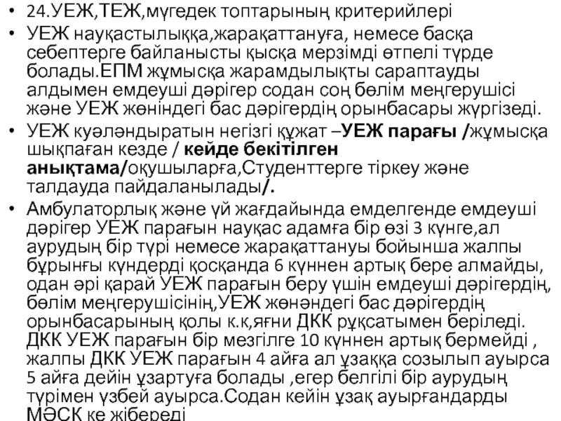 Слайд 824.УЕЖ,ТЕЖ,мүгедек топтарының критерийлері