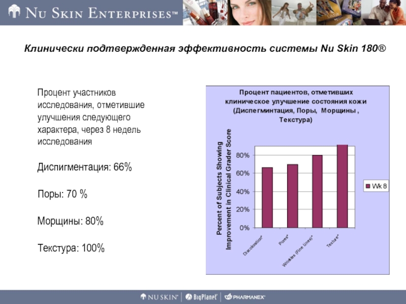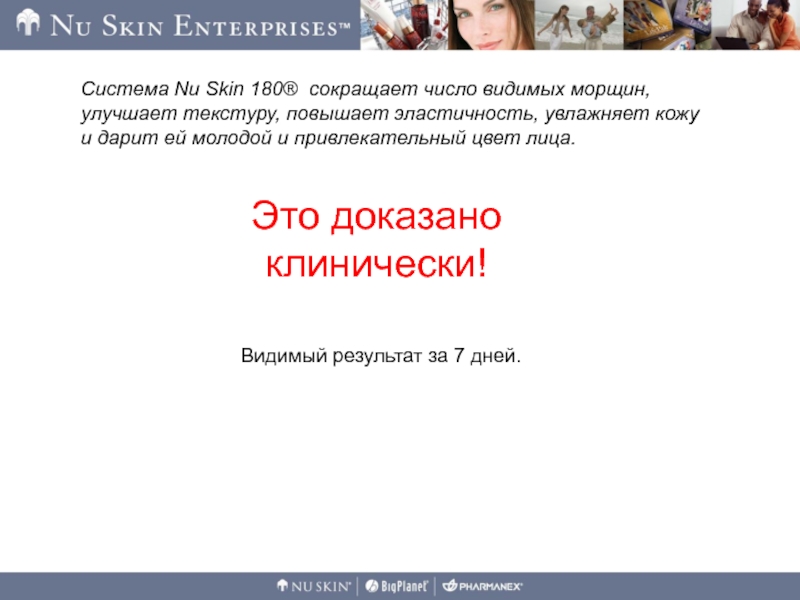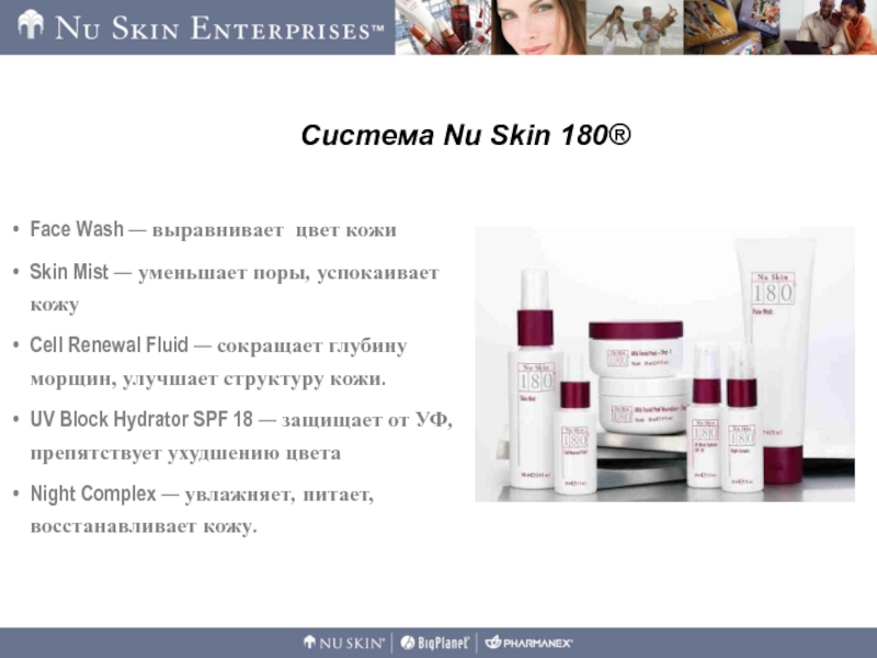 Слайд 2Система Nu Skin 180® сокращает число видимых морщин, улучшает текстуру,