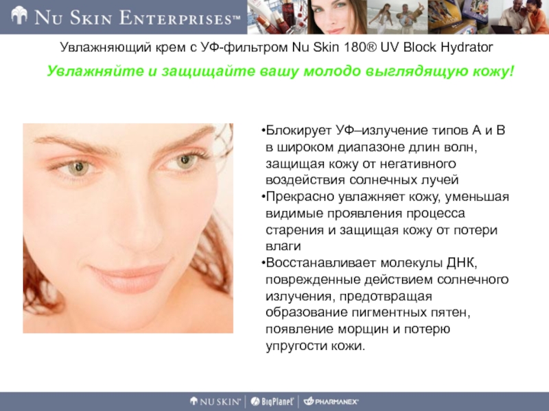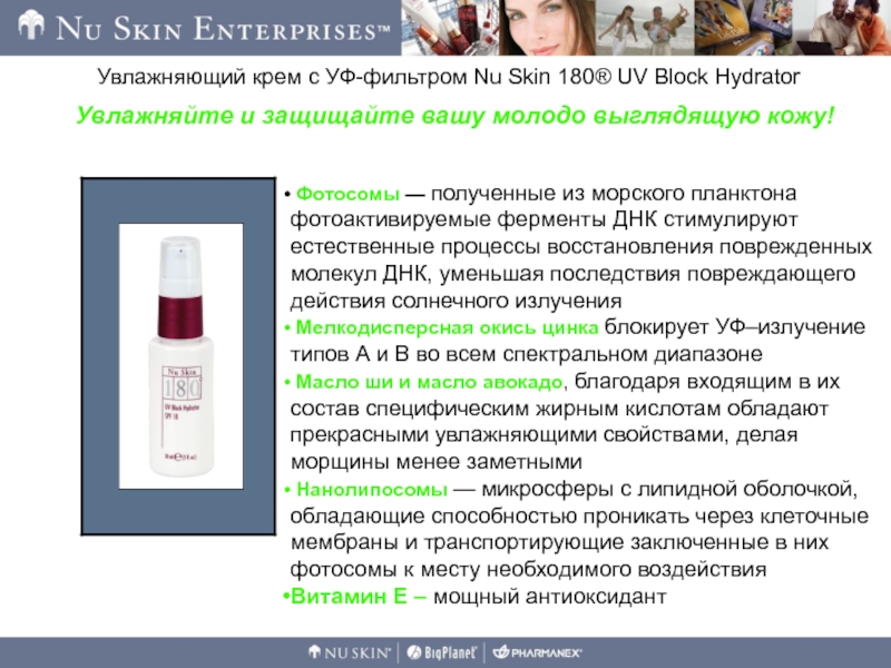 Слайд 21Увлажняющий крем с УФ-фильтром Nu Skin 180® UV Block Hydrator