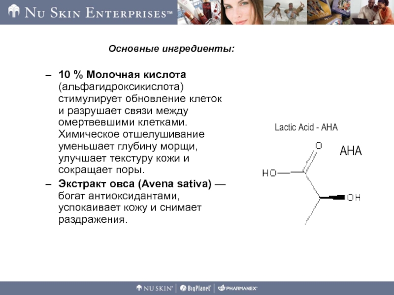 Слайд 2510 % Молочная кислота (альфагидроксикислота) стимулирует обновление клеток и разрушает