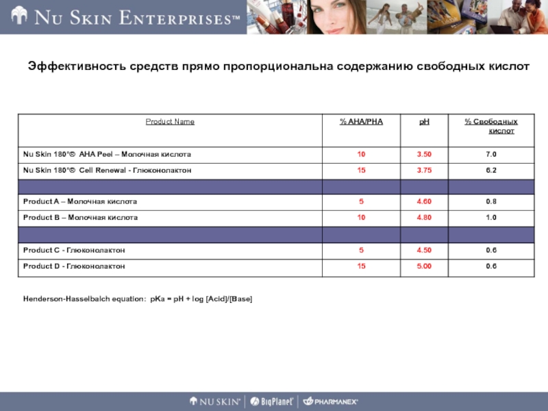 Слайд 23Эффективность средств прямо пропорциональна содержанию свободных кислот