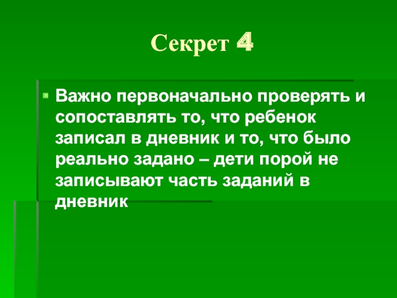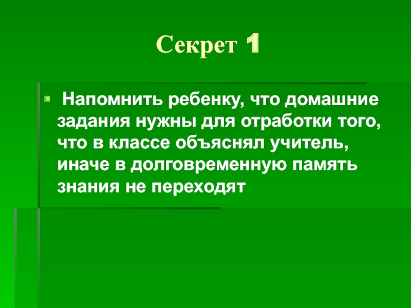 Не давайте ребенку дополнительных заданий кроме тех, которые ему задали в школе.